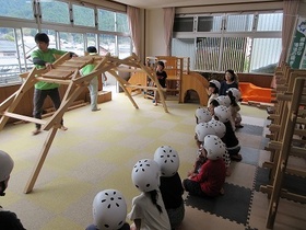 その後、もう一度大人が組み立て、しばらく園で遊具として遊ばせてもらいました。