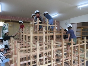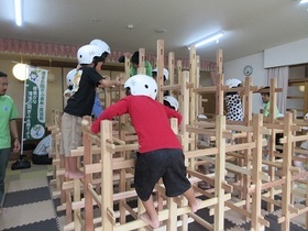 「くむんだー」という木のジャングルジムづくりを体験しました!