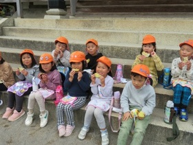焼き芋パーティーの日には、焼き芋を園庭で食べました。