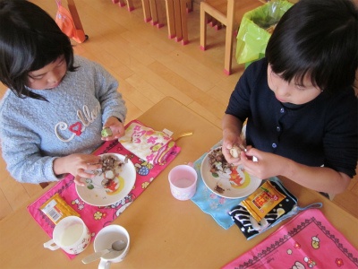 かわいい鬼のお面をかぶって、一生懸命豆を投げていましたよ。