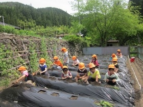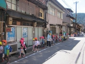 お兄ちゃんお姉ちゃんとペアになって手をつないで出かけます。