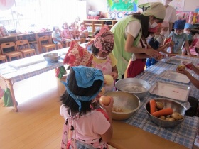 今回は、保護者さんから頂いた「すくなかぼちゃ」を使って作りました!