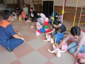 がんばって顔をつけてみたりと、それぞれあそびを見つけて楽しんでいます。